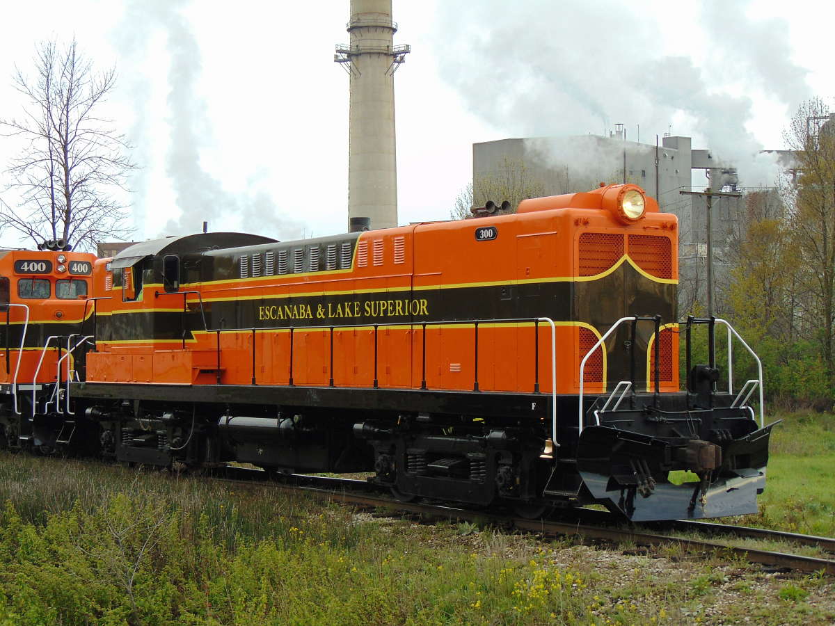 This was Tuesday May 23rd the ELS 300 and 400 shuffled over to the storage yard in Wells near the Verso paper mill and the ELS 1223 (SD9) came out to move storage cars to clear a path for the "executive units". Having cleared a path the 300 and 400 both headed over to the car repair shops in Escanaba and spent the early part of the afternoon doing their own work, switching freight cars before retiring for the day. We got our fill of trains and took the opportunity to catch up on some sleep.